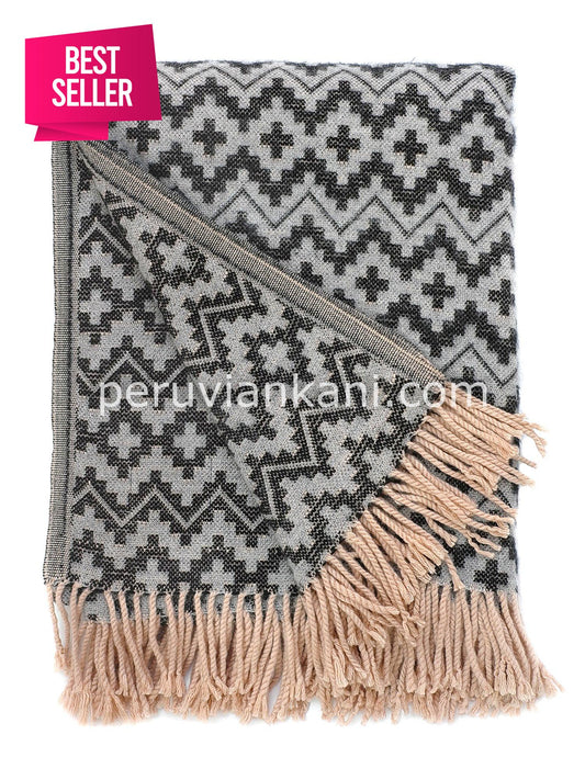 Alpaca Wool Blanket Throw Andes Ethnic Brack jade