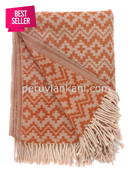 Alpaca Wool Blanket Throw Andes Ethnic Design Brick