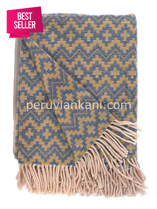 Alpaca Wool Blanket Throw Andes Ethnic Design Blue beige