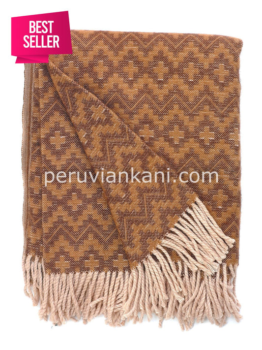 Alpaca Wool Blanket Throw Andes Ethnic Brown